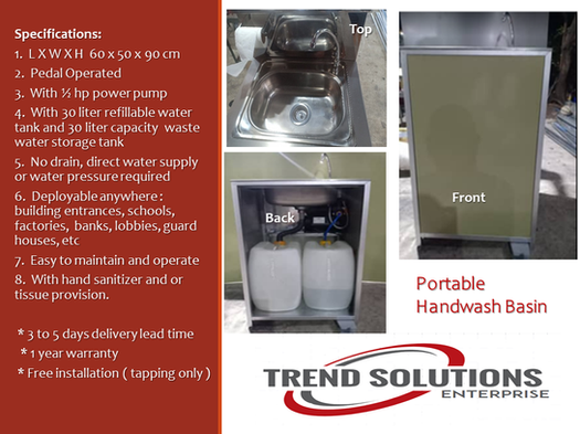 The COVID-19 pandemic has affected everyone’s lives. Amid the difficulties we are facing during this period of uncertainty, Trend Solutions Enterprise is pleased to announce that our products and services will now include Hygienic Product Solutions to address the current public health crisis. These solutions, including sanitation machines and equipment, are aimed at combating the spread of COVID-19. They are all ready-to-use, user-friendly, and easy to assemble and maintain.